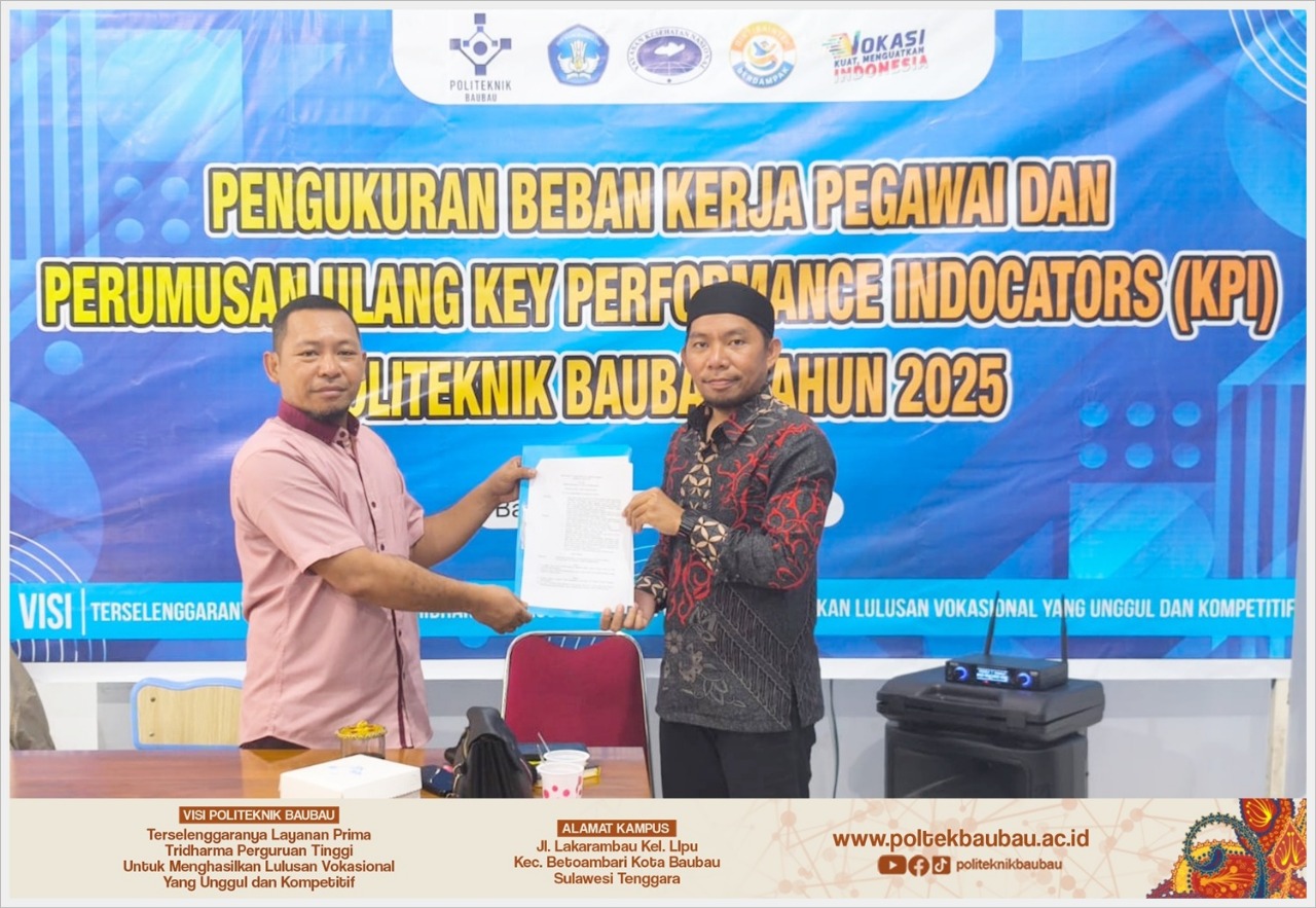 Kegiatan ini juga menjadi momentum penting bagi Politeknik Baubau dalam memperkuat budaya kerja yang berorientasi pada hasil dan kualitas. Dengan memperbarui KPI, institusi berharap dapat mendorong peningkatan produktivitas pegawai sekaligus memberikan arah yang jelas dalam pengembangan karier sumber daya manusia di lingkungan kampus.