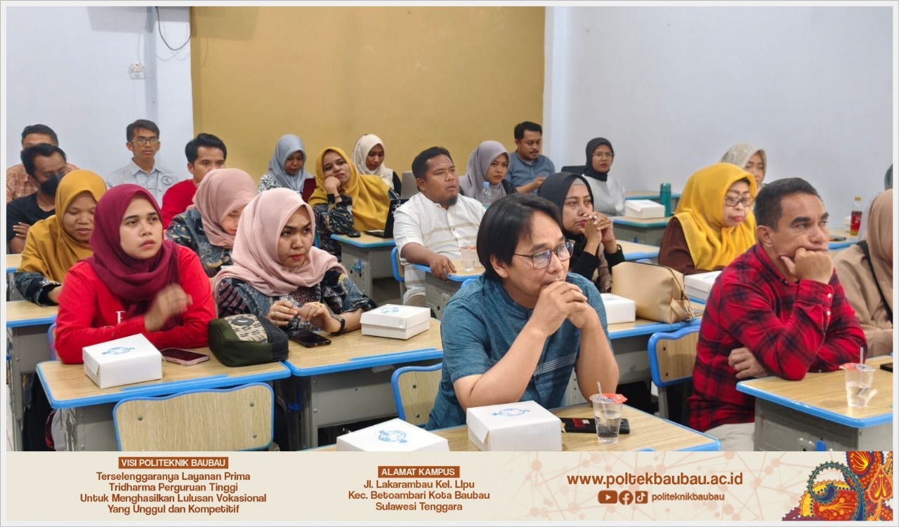 Kegiatan ini dihadiri oleh Ketua Yayasan Kesehatan Nasional Baubau, jajaran pimpinan Politeknik Baubau, serta seluruh dosen dan tenaga kependidikan. Kehadiran para pemangku kepentingan tersebut menunjukkan komitmen kuat dalam mendorong peningkatan kualitas layanan pendidikan dan manajemen internal. Suasana kegiatan berlangsung penuh antusias, dengan semangat bersama untuk memperkuat budaya kerja yang profesional.