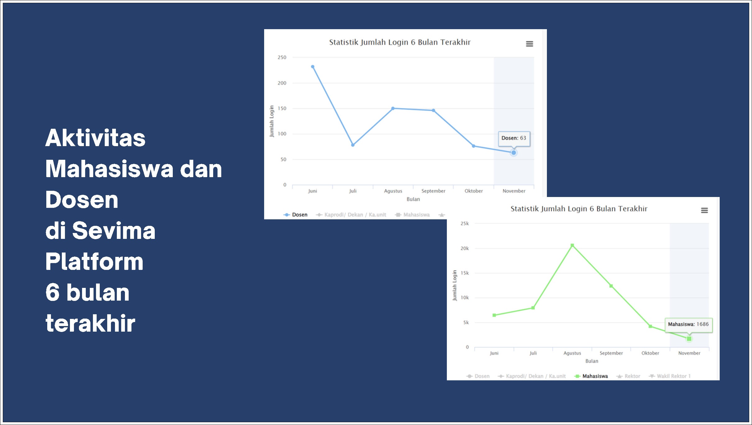 Implementasi modul akademik menjadi salah satu poin paling menonjol dalam laporan tersebut. Proses KRS mahasiswa, pelaksanaan perkuliahan, penilaian, KHS, hingga yudisium tercatat berjalan maksimal pada Semester 2024 Genap hingga 2025 Ganjil. Hal ini berdampak langsung pada peningkatan kualitas layanan akademik dan memastikan kegiatan belajar mengajar berjalan lebih terstruktur, efektif, dan terdokumentasi dengan baik. Aktivitas mahasiswa dan dosen dalam enam bulan terakhir juga menunjukkan tren positif yang menandakan tingginya tingkat adaptasi terhadap sistem digital.
