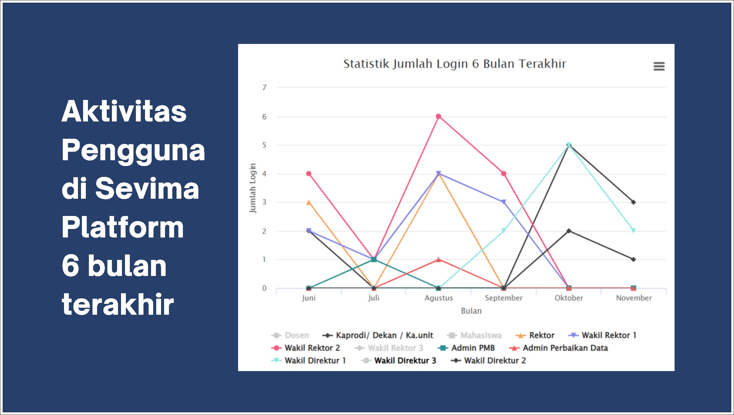 Di sisi PMB, proses pendaftaran, seleksi, hingga penetapan kelulusan PMB 2025 Ganjil telah memanfaatkan Sevima Platform secara penuh. Namun demikian, laporan mencatat bahwa pendataan jadwal seleksi berbasis Computer Based Test (CBT) masih perlu disempurnakan untuk memastikan integrasi data yang lebih optimal ke depannya.