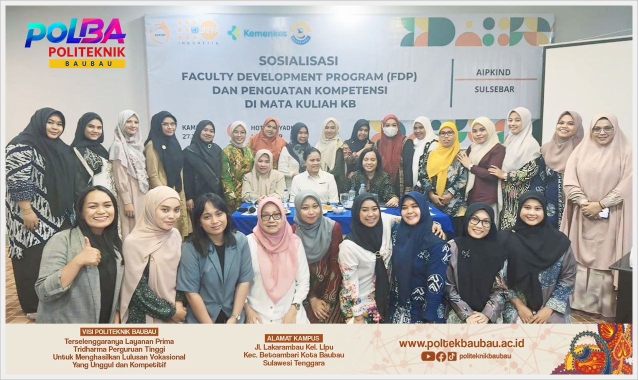 Dengan mengikuti kegiatan ini, Politeknik Baubau menunjukkan komitmen kuat dalam meningkatkan kualitas dosen dan proses pembelajaran. Kehadiran dua dosen kebidanan dalam sosialisasi FDP dan penguatan kompetensi mata kuliah KB menjadi wujud nyata upaya institusi dalam menghadirkan pendidikan yang adaptif, profesional, dan berorientasi pada kebutuhan masyarakat. *IsrJie