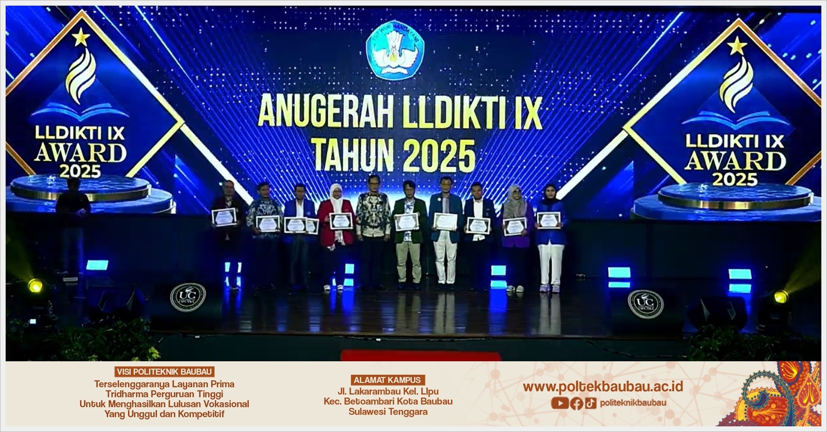 Politeknik Baubau Raih Tiga Apresiasi Bergengsi pada Award LLDIKTI Wilayah IX Tahun 2025
