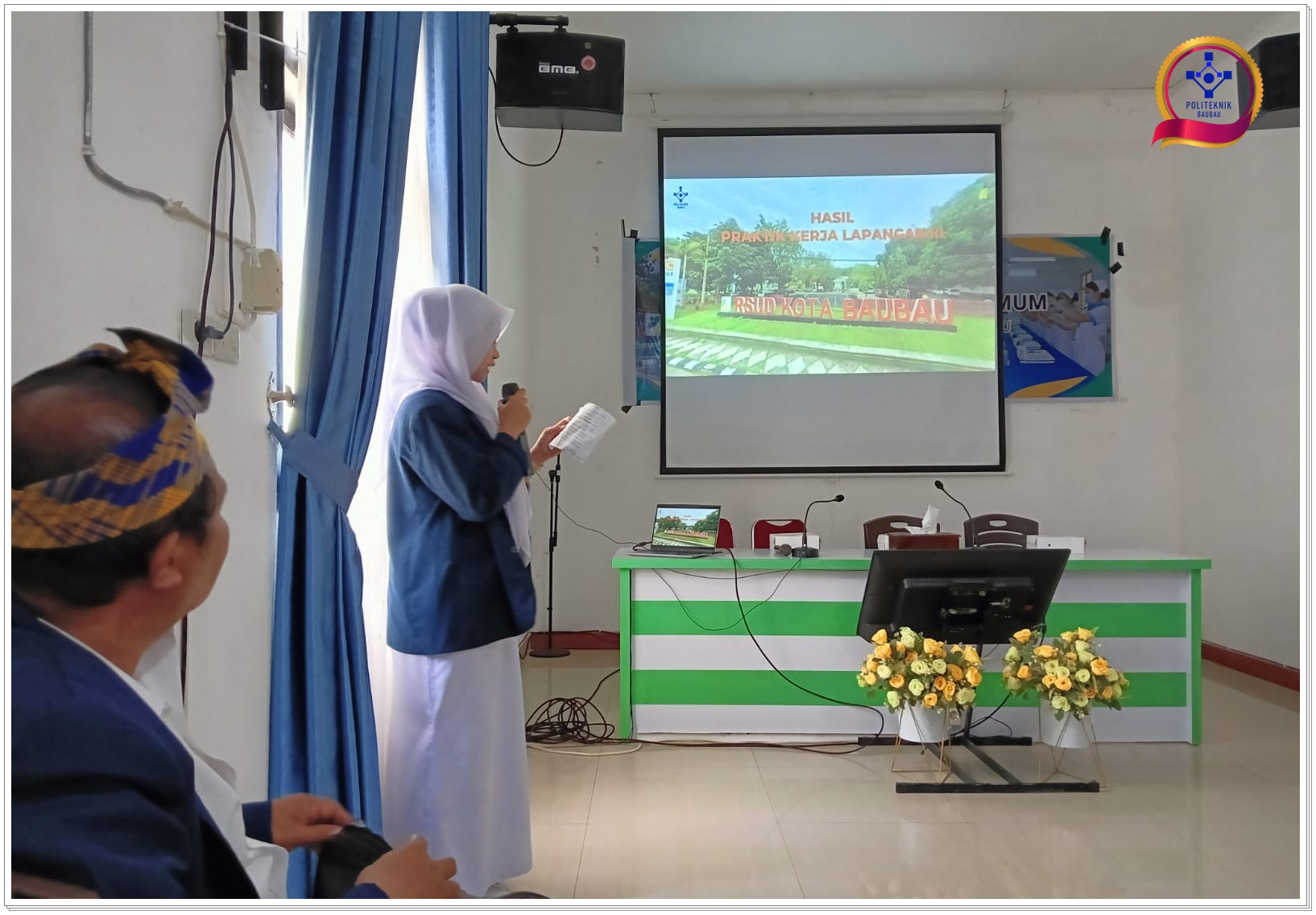 Kegiatan seminar hasil diisi dengan presentasi laporan kegiatan oleh mahasiswa, yang memaparkan berbagai temuan, pengalaman, serta rekomendasi perbaikan sistem pengelolaan data rekam medis. Dalam kesempatan tersebut, pihak rumah sakit juga memberikan apresiasi atas kontribusi mahasiswa RMIK Politeknik Baubau yang dinilai telah menunjukkan kinerja baik, disiplin, dan memiliki etos kerja yang tinggi selama melaksanakan praktik.