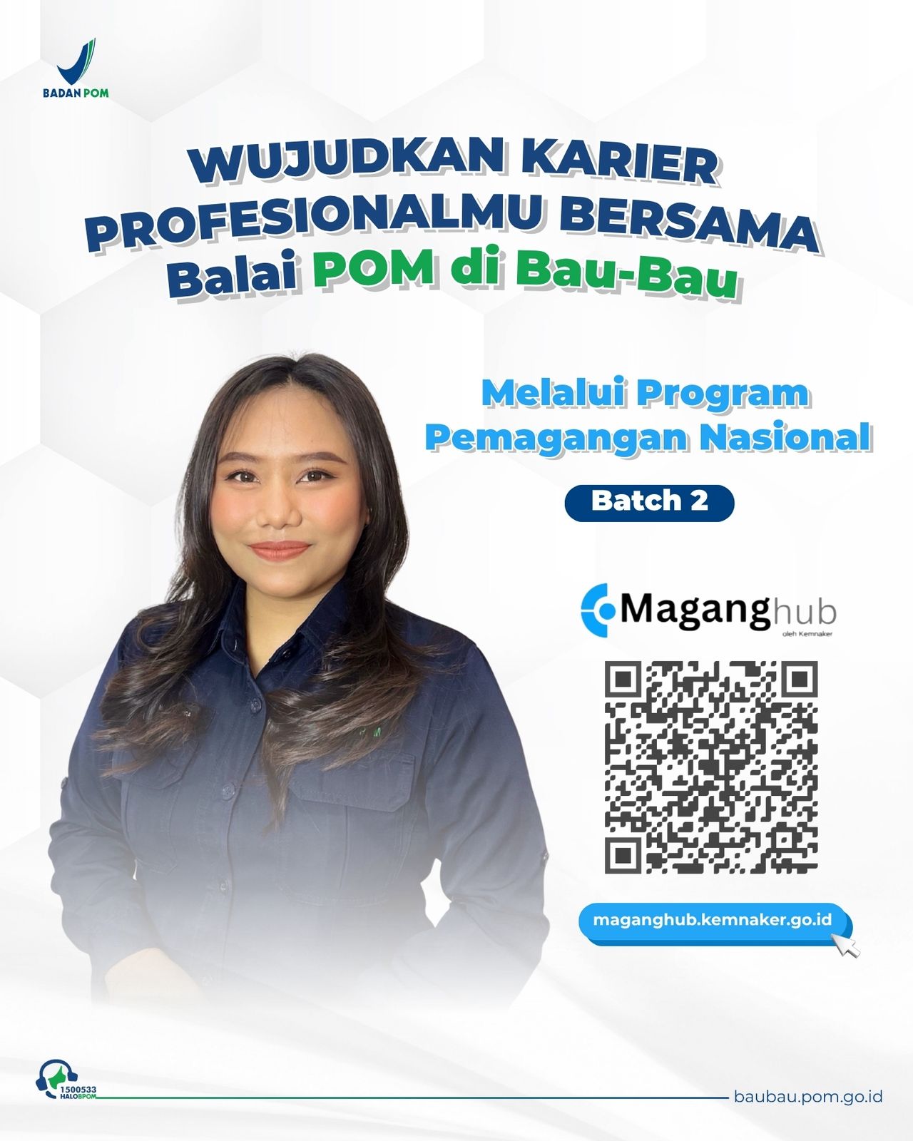 Hai #SabangkaBPOMBaubau yang kemarin bertanya-tanya terkait magang, yuk daftarkan diri kalian melalui Program Pemagangan Nasional Batch 2 dari Kementerian Ketenagakerjaan RI. Dalam program ini, kalian berkesempatan mewujudkan karier profesional di Balai POM di Bau-Bau.