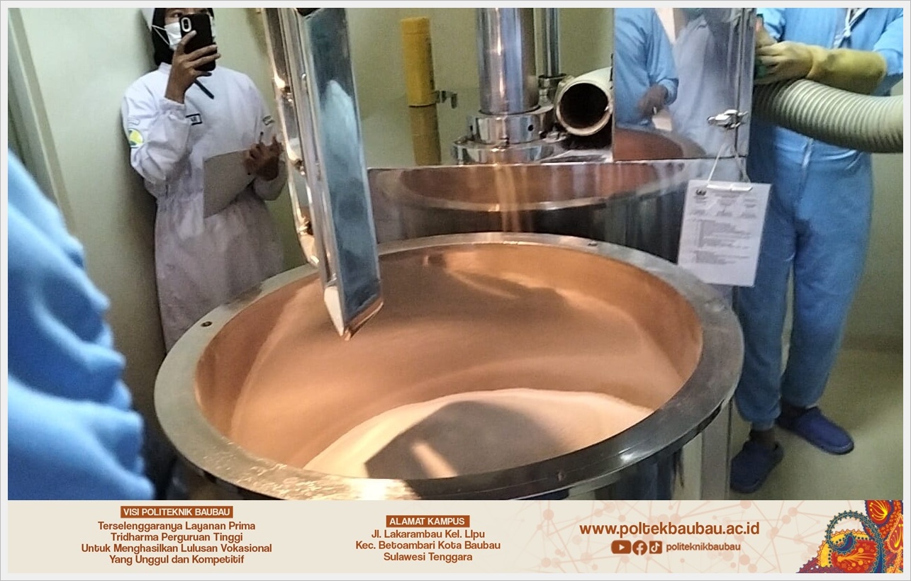 Mahasiswa Program Studi D3 Farmasi Politeknik Baubau melaksanakan kegiatan Praktik Industri di Lembaga Farmasi Pusat Kesehatan Angkatan Darat (LAFI Puskesad) Bandung. Kegiatan ini merupakan bagian dari implementasi pembelajaran berbasis industri yang bertujuan untuk meningkatkan kompetensi mahasiswa dalam bidang produksi dan pengendalian mutu sediaan farmasi sesuai standar industri dan kefarmasian nasional.