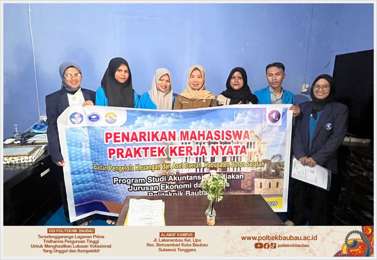 Adapun lahan praktik PKL mahasiswa Prodi D4 Akuntansi Perpajakan meliputi Badan Pendapatan Daerah (Bapenda) Kabupaten Buton Selatan, Badan Pengelola Keuangan dan Aset Daerah (BPKAD) Kabupaten Buton Selatan, BPKAD Kota Baubau, Bank BPD Sultra, Bank BPD Kota Baubau, serta beberapa Kantor Notaris, termasuk Kantor Notaris dan PPAT Laode Muhammad Kurniawan Utomo, S.H., M.Kn. Keberagaman lokasi praktik ini memberikan pengalaman yang komprehensif bagi mahasiswa.